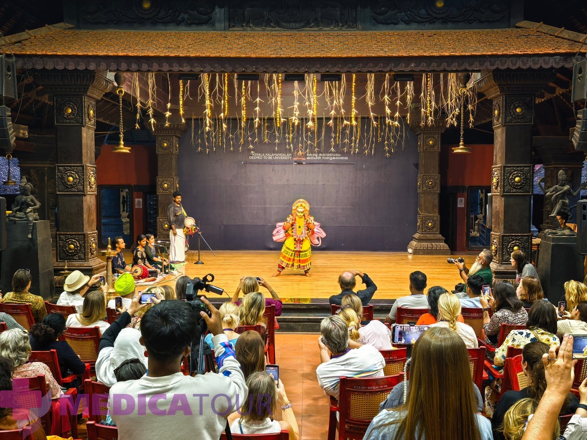 🇮🇳 🎭 Посетили Kerala Kalamandalam (Университет искусства и культуры Кералы) — центр обучения индийским видам исполнительского искусства, основанный в 1930 году. Специально для делегаций подготовили небольшой спектакль, после которого участники смогли пообщаться и сфотографироваться с артистами. Руководство МедикаТур находится в туре по аюрведическим и велнесс курортам Кералы в составе российской делегации. В тур было приглашено более 100 участников из 35 стран. Организаторы - Министерство туризма Кералы и Ayurveda Promotion Society.