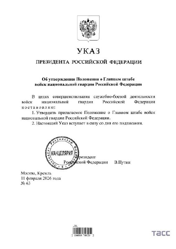 Соответствующий указ 11 февраля опубликован на официальном интернет-портале правовой информации и вступил в силу со дня подписания. Главный штаб определён как основной орган управления войсками нацгвардии. Он организует применение войск в мирное и военное время на основе решений директора ведомства, участвует в формировании и реализации государственной политики, планирует строительство и развитие войск, а также отвечает за поддержание их боевой и мобилизационной готовности и контроль состояния подразделений. К функциям штаба также отнесены оперативная и мобилизационная подготовка, боевое обеспечение, организация разведки, развитие системы управления, связи и автоматизации, шифровальная работа, обеспечение безопасности службы и охраны труда. 🇷🇺 1430 гв полк в MAX Подписаться | Связаться с полком Служить в полку