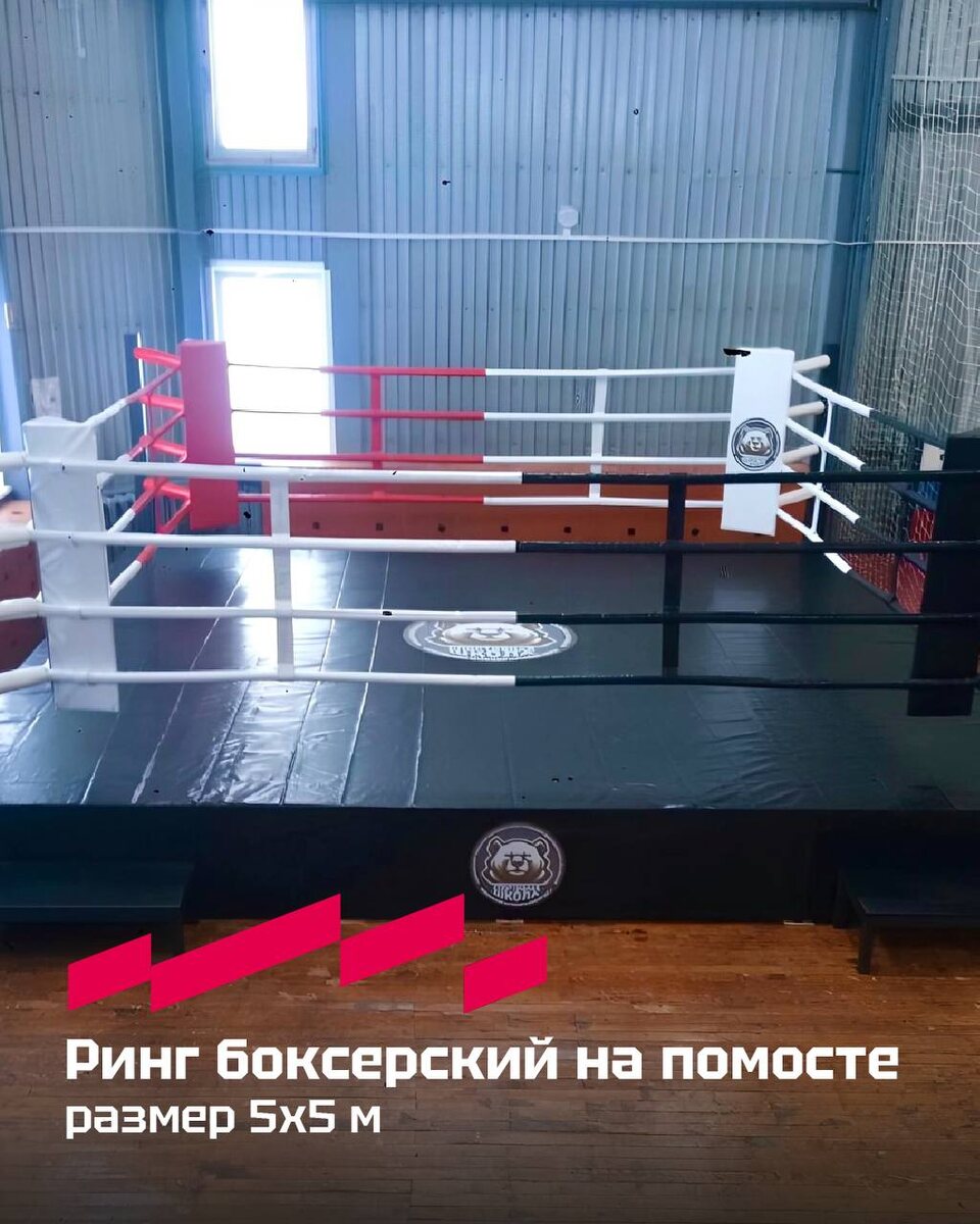 Производство ринга на помосте размер 5х5 м, боевая зона 4х4 м, помост 0,5 м с логотипами