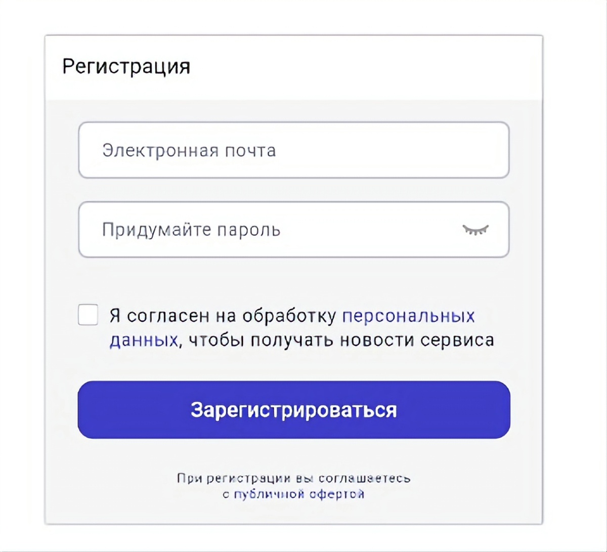 Появится окошечко, в котором вам нужно будет указать свою почту и придумать пароль.
