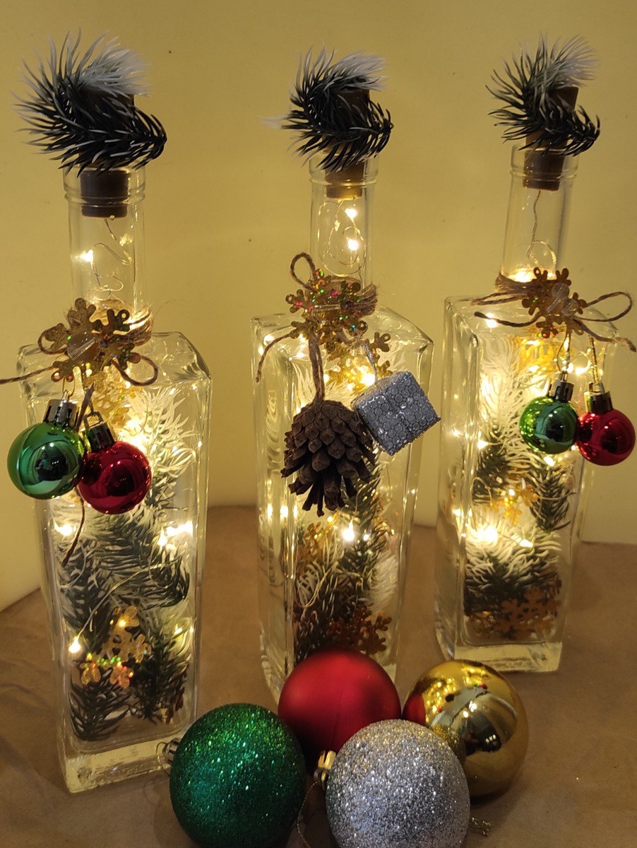 Что может быть проще и оригинальнее самодельных фонариков из бутылок, любых найденных дома украшений и гирлянды-пробки на батарейках.