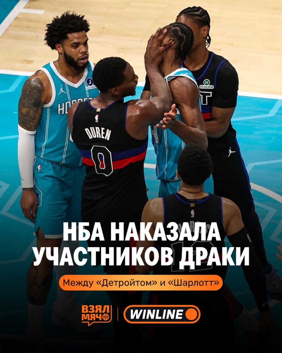 ? НБА объявила дисквалификации за массовую потасовку в матче между «Детройтом» и «Шарлотт»: 🔹 Айзейя Стюарт — 7 матчей 🔹 Майлз Бриджес — 4 матча 🔹 Мусса Диабате — 4 матча 🔹 Джейлен Дюрен — 2 матча Стюарт получил самое жёсткое наказание за то, что покинул скамейку, агрессивно ворвался в конфликт и участвовал в драке. Лига отдельно подчеркнула его «повторяющуюся историю неспортивных действий». Игроки «Пистонс» начнут отбывать дисквалификацию уже сегодня в матче против «Рэпторс», игроки «Хорнетс» — в матче с «Хокс». 🏀 ПОДПИШИСЬ — ЗДЕСЬ ЖИВЁТ БАСКЕТБОЛ!