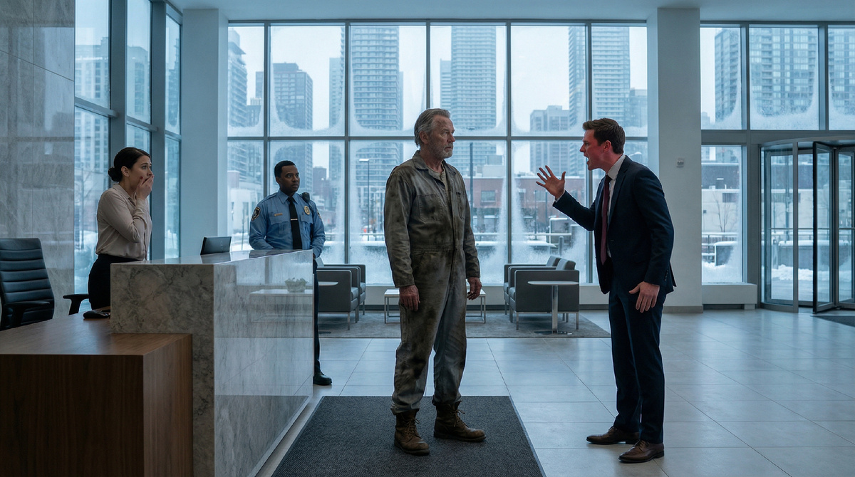 Андрей Николаевич Седов — шестьдесят два года, рост метр восемьдесят пять, руки как лопаты — стоял в приёмной торгового центра «Галактика» в рабочей робе, заляпанной машинным маслом. На ногах — разбитые берцы. На плече — потёртая сумка из кожзама.