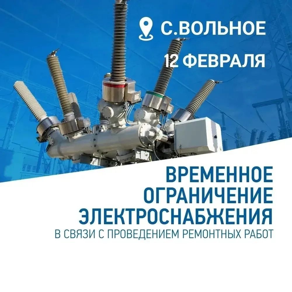 подачи электроэнергии 🗓️ 12 февраля 2026 г. с 10:00 до 17:00 📍с. Вольное: ул.Восточная 1-31, 2-8, Гагарина 2-46, 3-51, Горького 1-63, 2-52, Комсомольская 4-26, 5-25, Краснодарская 1-65, 2-34, Кубанская 1-11, 2-20, Ленина 2-84, 3-85, Мира 1-59, 2-30, Набережная 1-27, 2-8, Октябрьская 4-104, 5-67, Первомайская 1-61В, 4-76, Пионерская 1-7, 33-39, 2-6, 14-40, Подгорная 1-15, 2-26, Почтовая 1-9, 4-38, Советская 1-45а, 2-66, Циолковского 3-39, 20-40, Школьная 2-50, 3-39, Южная 13, 64-112, 65-77. 📲Дополнительную информацию можно получить по телефону диспетчера: т.886140 5-54-60, 89183800570 https://max.ru/id2372001505_gos https://ok.ru/group/70000041523919 https://vk.com/public212083585 https://dzen.ru/id/660af8bc3bd95d5b99e56429 - подпишись на СВОй "Рассвет".