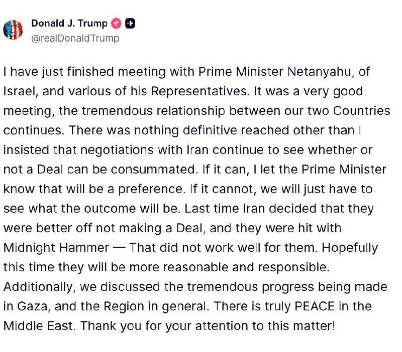 ‘THERE WAS NOTHING DEFINITIVE REACHED other than I insisted that negotiations with Iran continue to see whether or not a Deal can be consummated’