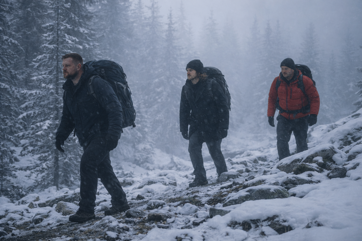 Когда мы вышли из пещеры, стало светлее, но из-за густого тумана казалось, что мы бредём в сумерках, как три призрака среди скал и тёмных деревьев. Стояла мёртвая тишина, и хруст снега под ногами казался очень громким — было ощущение, что мы бредём в узком ущелье, и любой шорох отражался от окружающих нас каменных скал. Может, оно так и было, потому что ничего не было видно дальше десяти метров — только голые стволы деревьев и массивные каменные стены. Время от времени раздавались звуки падающих камней, ломающихся со скрипом веток или одиночный крик какой-то птицы, и каждый звук остро бил по напряженным нервам и заставлял вздрагивать и оборачиваться.