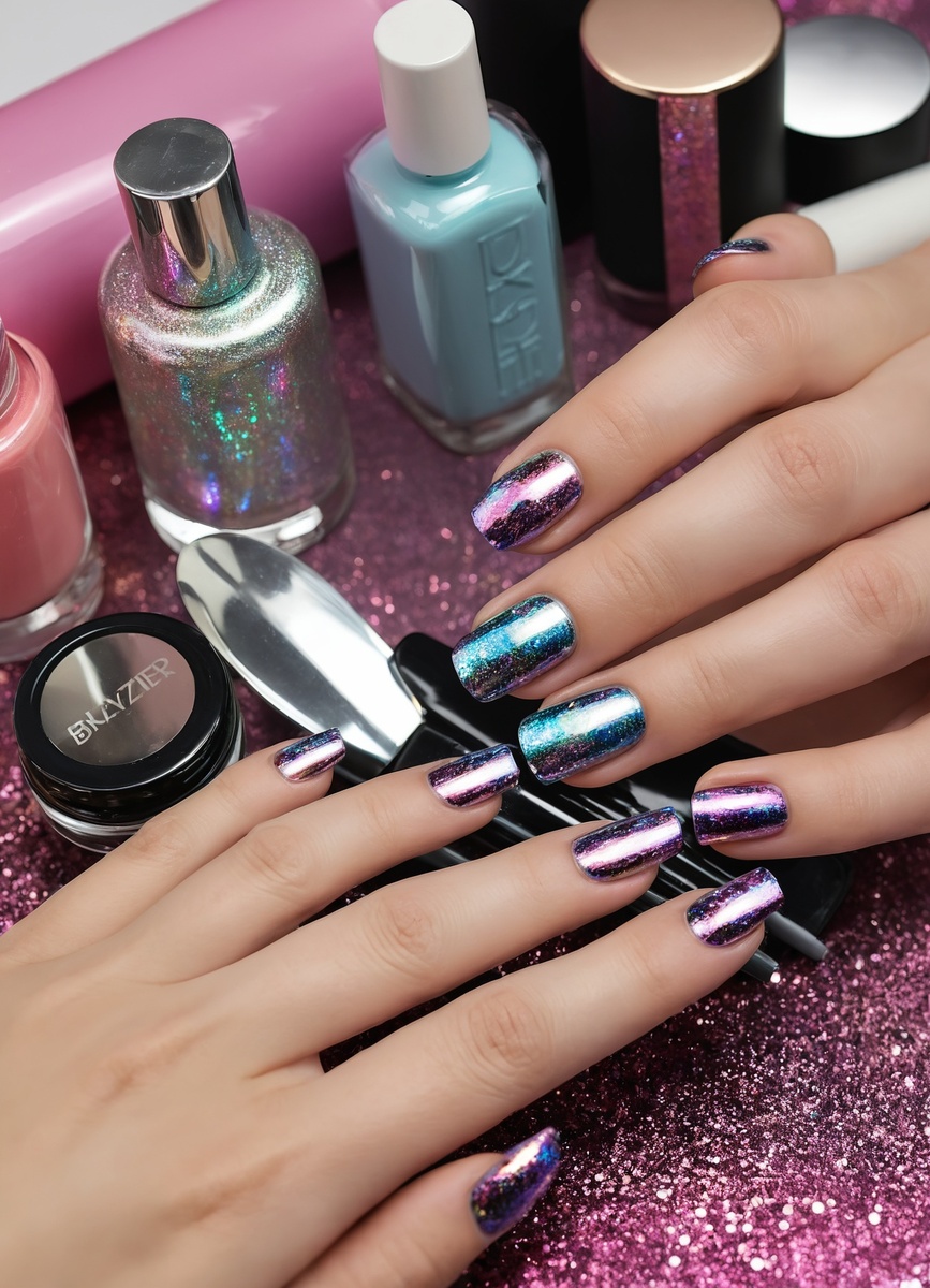 Фольга в маникюре обладает уникальной текстурой и блеском, но не является единственным вариантом. Альтернативные материалы, такие как слайдеры, наклейки и гель-лак с эффектом металлика, также могут создать привлекательные дизайны. Слайдеры легко наносятся и позволяют добиться четких деталей, в то время как гель-лак обеспечивает долговечность и насыщенность цвета. Каждый из этих материалов имеет свои преимущества и недостатки в зависимости от желаемого результата.