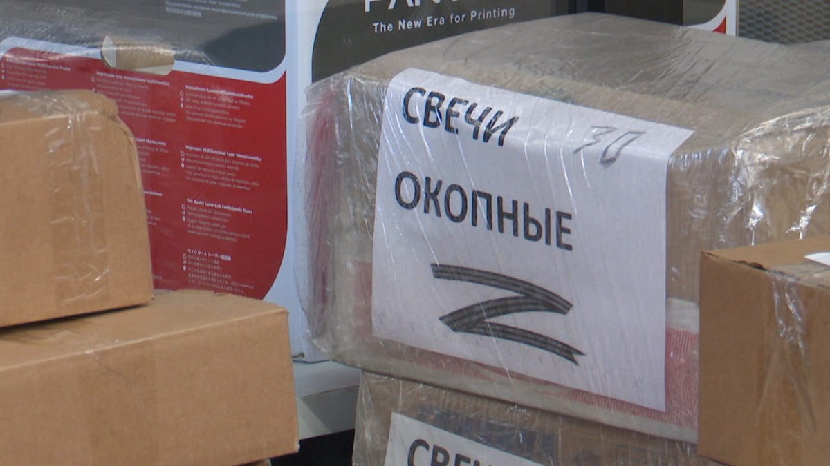 Груз предназначен бойцам 234-го полка. Собрали около 170-ти окопных свечей, почти 130 маскировочных сетей, сладкие подарки. Общий вес коробок - больше полутонны. Чтобы погрузить их все в КАМАЗ, понадобились усилия множества волонтеров. Груз праздничный, приурочен к наступающему Дню защитника Отечества. "Я здесь представляю общественный совет при министерстве молодежной политики Псковской области. Также некоммерческие организации, некоммерческий сектор. Мы решили нашей компанией, нашей командой прийти и поддержать бойцов в преддверии 23 февраля. Принесли теплые вещи, сладкие подарки, продукты. В общем все то, что необходимо зимой нашим дорогим бойцам", - Сергей Елизаров, председатель общественного совета при министерстве молодежной политики Псковской области. "Также у нас в Ресурсном центре добровольчества есть станок, на котором любой желающий человек может попробовать сплести сеть для бойцов. Буквально вчера мы сняли со станка три новые сети", - Анна Соловьева, специалист Ресурсног