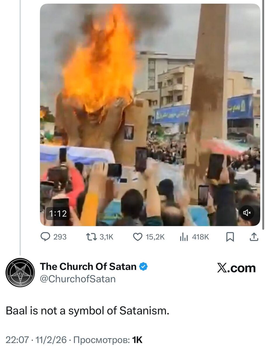 Американская «Церковь Сатаны» Лавея уже заявила, что Ваал не их символ 😃 В этом посте есть большое видео, которое не загрузилось в Дзен. Откройте оригинал поста в телеграме, чтобы его посмотреть