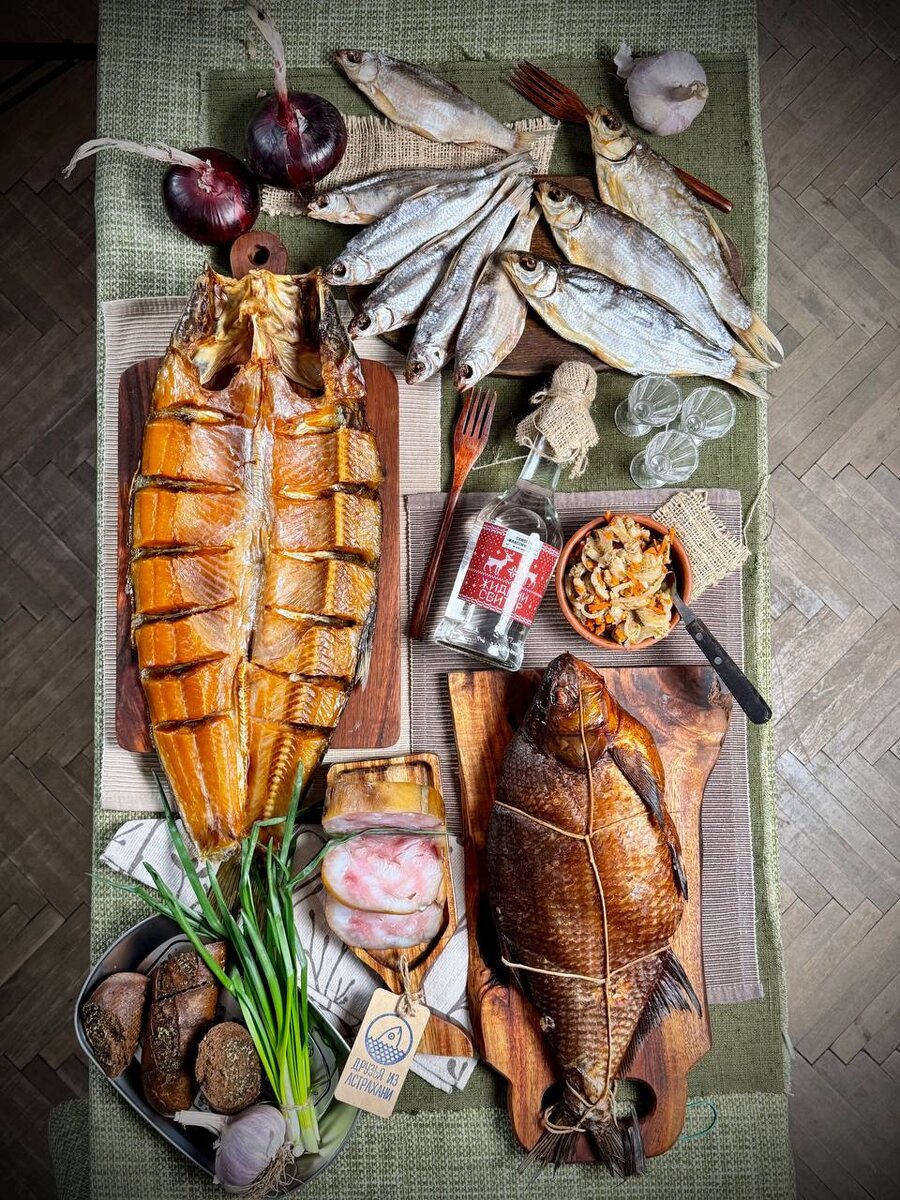 » И вот где-то уже маячит тот самый день. День носков, трусов и бритвенных наборов. День, когда нужно угадать желание мужчины, который молчит как партизан. Всё-то у него есть, ничего ему не надо… А то что надо-сам берет и покупает. И душу мужчины радует не столько подарок, а сколько попадание в эмоцию и порыв этой души. Мы встречали людей, для которых лучший подарок в этот день- ноль пропущенных и ноль сообщений от домочадцев. Отдыхает мужик. Весь день его(чаще-полтора). Так вот, что же такое «ФЕВРАЛЬСКИЙ»? Подарок? Вполне! Повод собраться? Весьма! Эмоция? Конечно! Он-такая некая «хотелка». Ни капли не практичный(это не шуруповёрт вам), но очень нужный. Особенно в тот самый день. Мы понимаем это полностью и постарались сделать душевно и интересно. Ну гляньте: 1. Свежая икряная ВОБЛА 2. Рыбец жирный и нежный (как ты) 3. ХЕ из щуки. Идеальная редкая закуска. 4. Сом брикетом х/к. Как ветчина и балык одновременно. 5. Здоровый Жерех х/к. Его вкус не забыть. 6. Волжский мощный лещ. 7.