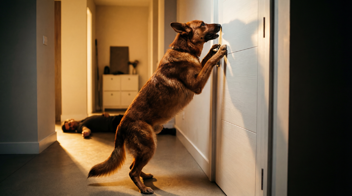 Но она не отходила. Толкала меня носом в бок. Сначала легко, потом настойчивее. Скулила громче. Потом резко встала, подошла к входной двери и оглянулась. Будто звала за собой.