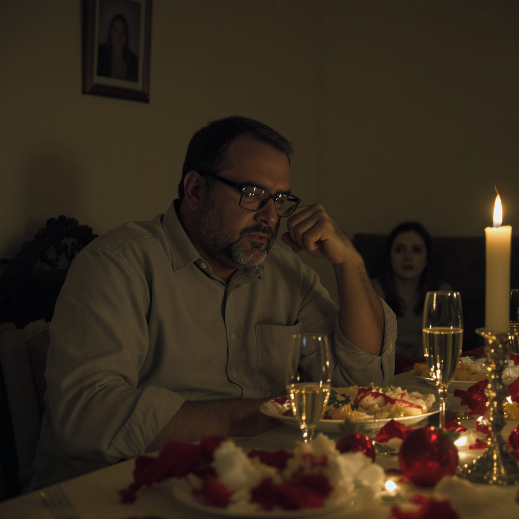 Я посидел минуту. Потом встал. Прошёл на кухню. Стол – разгромленный. Шампанское на скатерти. Опрокинутый бокал. Салфетки на полу. Свечка закатилась под стул.