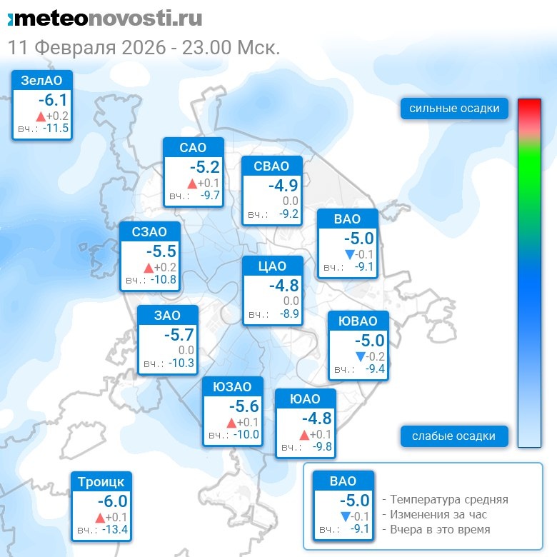 В 23:00 в Москве было от -6.2°C до -4.6°C, средняя температура -5.2°C #погода #Москва #зима #температура #11февраля #среда