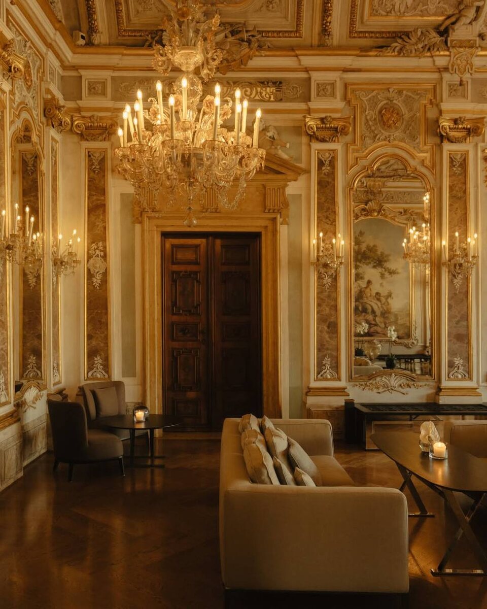 венецианской семьи. Этот палаццо входит в число восьми великих дворцов Венеции и до сих пор сохраняет подлинные интерьеры эпохи Ренессанса. За его фасадом фрески школы Джованни Баттисты Тьеполо, золочёные потолки, лепнина, мраморные камины и исторические салоны. Свет, отражаясь от воды Гранд-канала, проникает сквозь высокие окна и оживляет росписи, которым более четырёх столетий. Именно здесь, среди залов, пропитанных историей, мы начинаем наше путешествие-секрет в карнавальную Венецию. Таинственно? Без сомнений. Загадочно? Безусловно. Роскошно? Это Венеция.