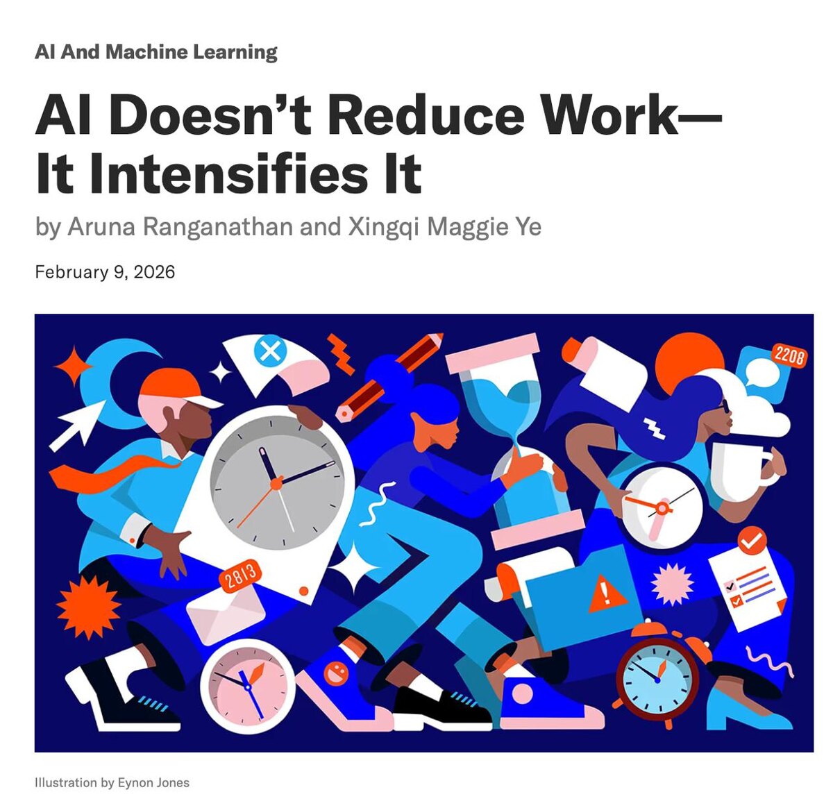 Из-за ИИ мы начинаем работать больше, нейронки буквально заставляют нас работать в разы больше, но без них мы уже не можем. На эту тему вышло исследование Harvard Business Review и статья Business Insider. Итог там простой: чем больше мы используем ИИ, тем сильнее в итоге выгораем. В первом исследовании восемь месяцев наблюдали за технологической компанией, и из-за ИИ все обязанности перемешались. Все делают работу друг друга, а рабочий день перестал заканчиваться. По своей сути ИИ убивает навык думать. Решать задачи без искусственного интеллекта становится сложнее. Но мы уверены, что это куда смешнее, чем кажется на первый взгляд, потому что человечество в очередной раз со всего размаху наступает на старые грабли. Отсюда, собственно, вопрос: умели ли мы вообще думать? @lobuskin