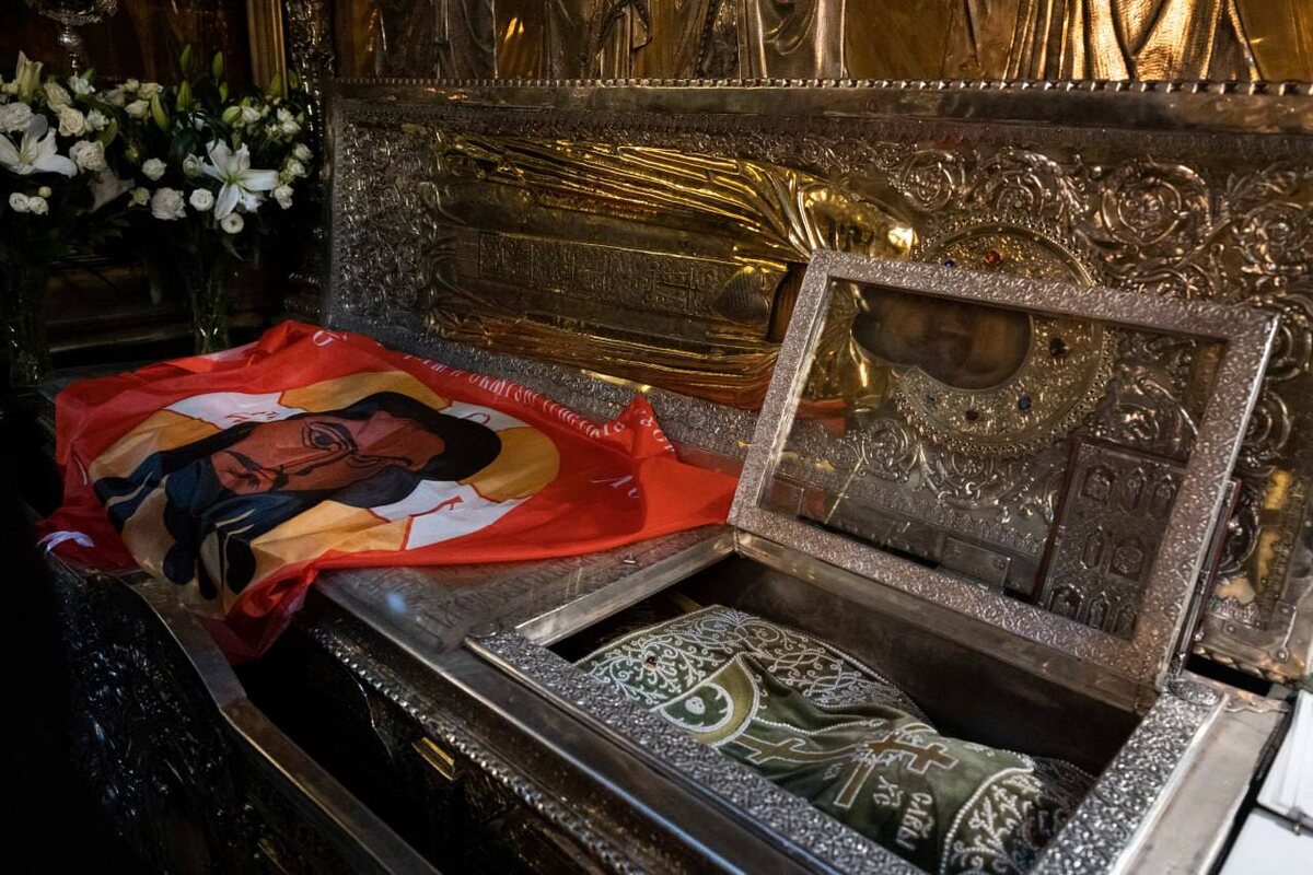 Сегодня в Троицком соборе Лавры освятили знамёна и шевроны, которые отправят ребятам