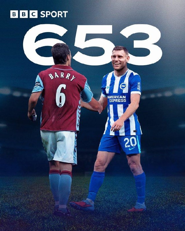 40-летний Джеймс Милнер из "Брайтона" повторил рекорд Гарета Бэрри из 653 сыгранных в Премьер-Лиге матчей 🔝