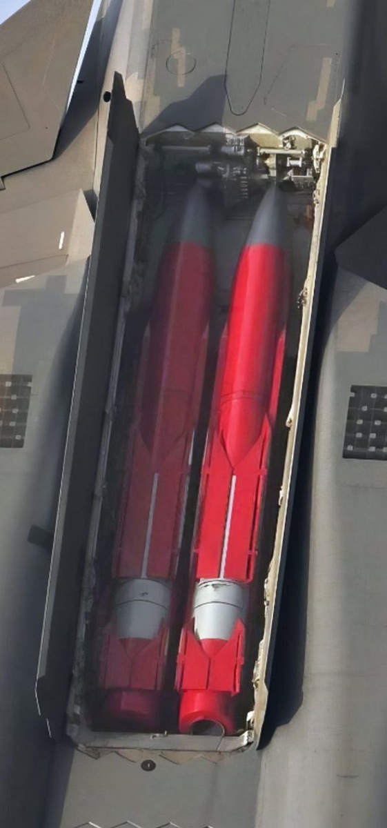 Близкий взгляд на макеты новейших противорадиолокационных ракет Х-58УШК внутри переднего центрального внутрифюзеляжного отсека Су-57