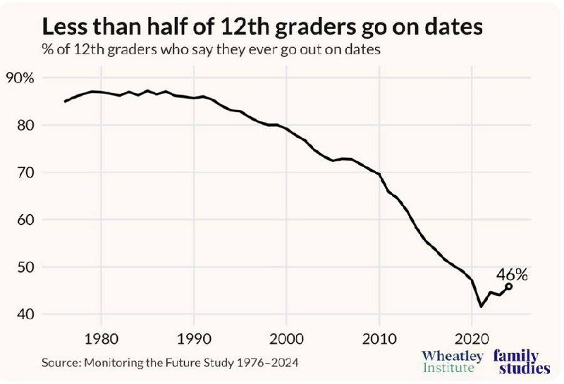 В США в 2024 году лишь 46 % старшеклассников сообщили, что когда-либо ходили на свидания