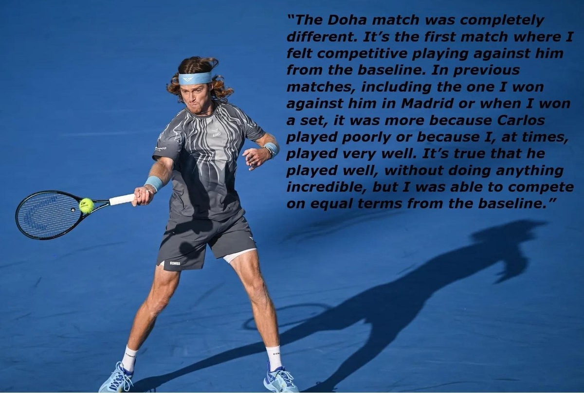". 💬 "Матч в Дохе был совершенно другим. Это был первый матч, в котором я почувствовал, что могу конкурировать с ним, начиная с задней линии. В предыдущих матчах, включая тот, который я выиграл у него в Мадриде, или когда я взял сет, это было скорее потому, что..." Подпишись на Эйс и точка