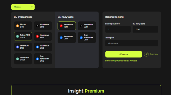 - Путешественники и экспаты. Благодаря офисам в Турции, ОАЭ, Армении и Грузии, Insight крипто обменник позволяет быстро обменять USDT на местные лиры, дирхамы или рубли без поиска сомнительных менял.