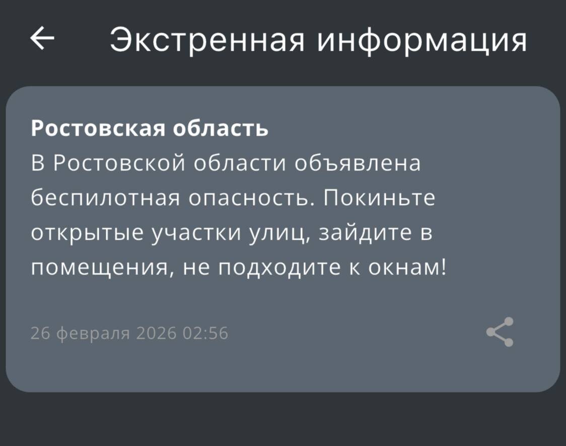 ‼️Экстренная информация РСЧС: В Ростовской области объявлена беспилотная опасность.
