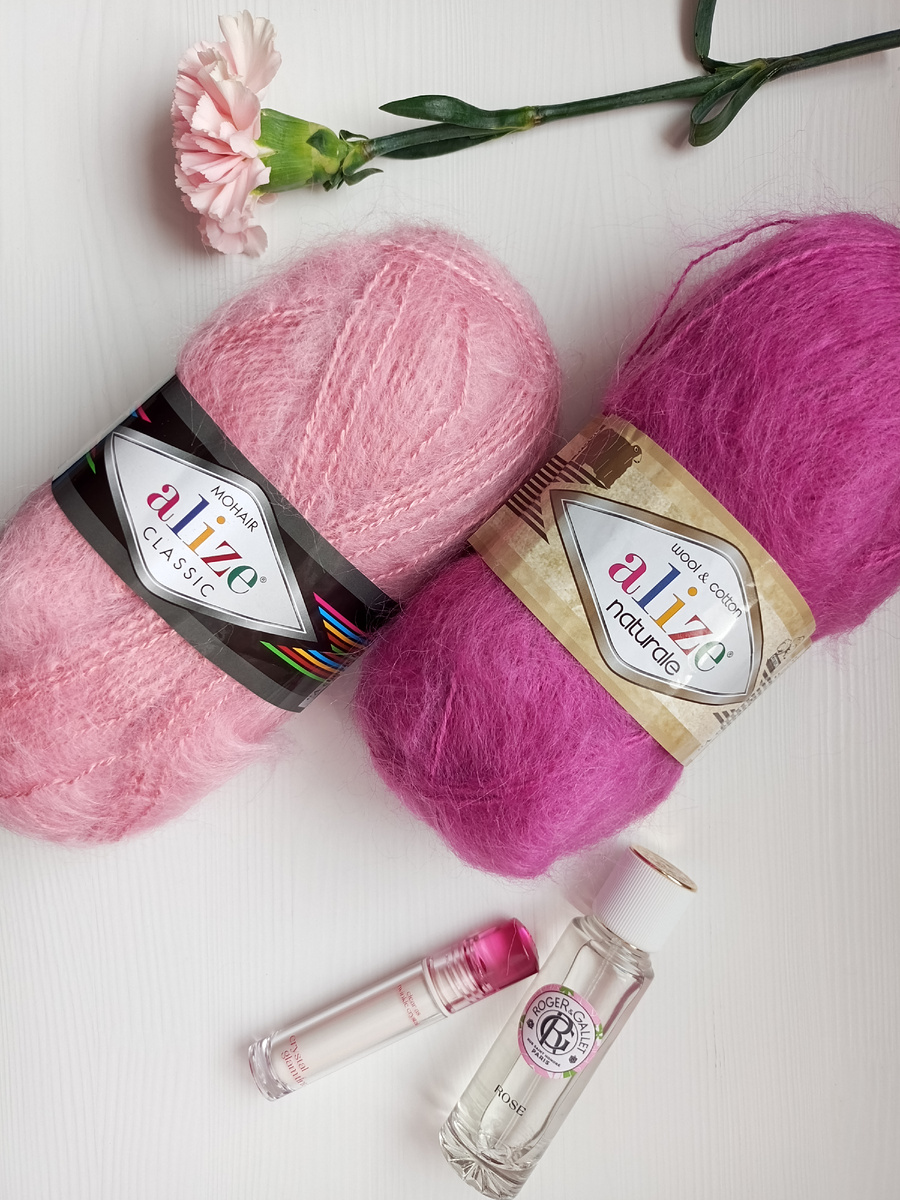 Весной хочется добавить нежности и женственности в свой трикотажный гардероб, а что может быть милее розовой пушистой пряжи? У турецкого производителя Alize есть два с виду похожих по текстуре моточка: Mohair Classic и Wool&Cotton Naturale.