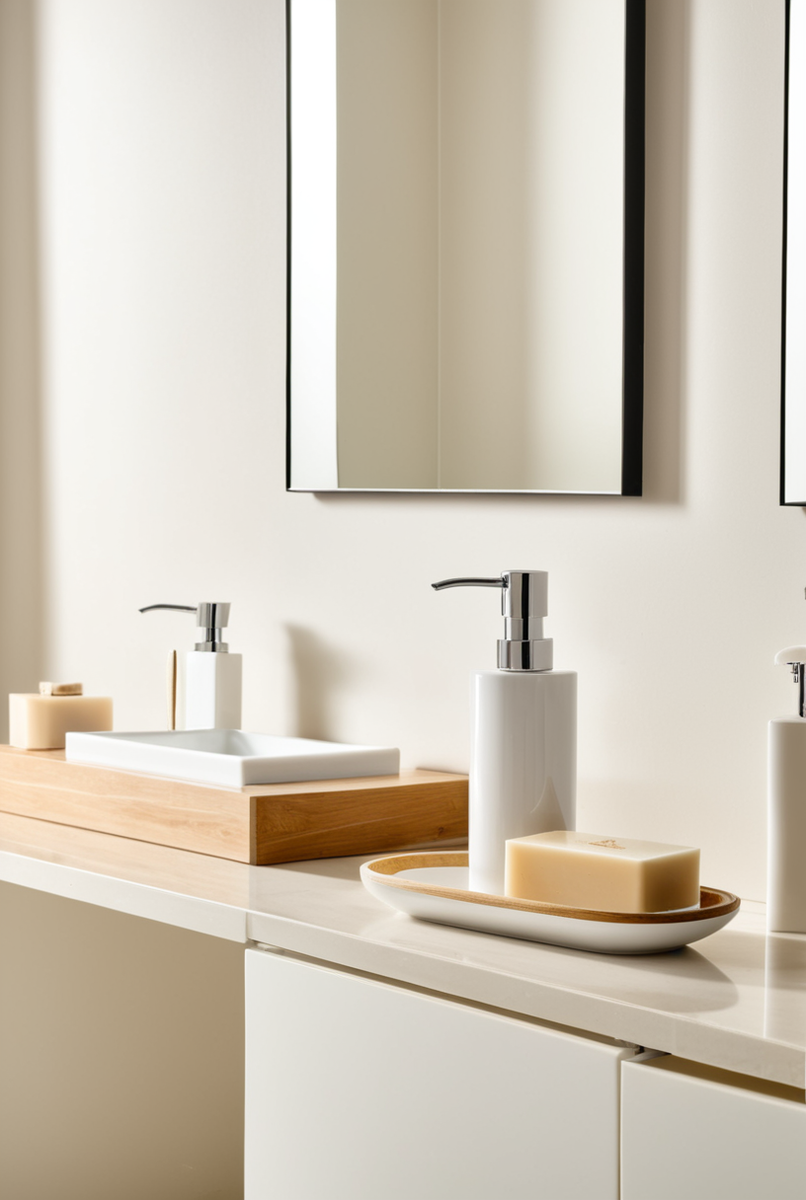 Готовый комплект для ванной, включающий мыльницу, дозатор для жидкого мыла и стакан для зубных щеток, — это гарантия, что декор будет в единый стиль. Это экономит время и обеспечивает полную визуальную гармонию. Однако, подбирая каждый элемент отдельно, вы можете создать уникальный интерьер, сочетая разные фактуры и материалы, например, керамику и бамбук, для действительно уникального оформления санузла.