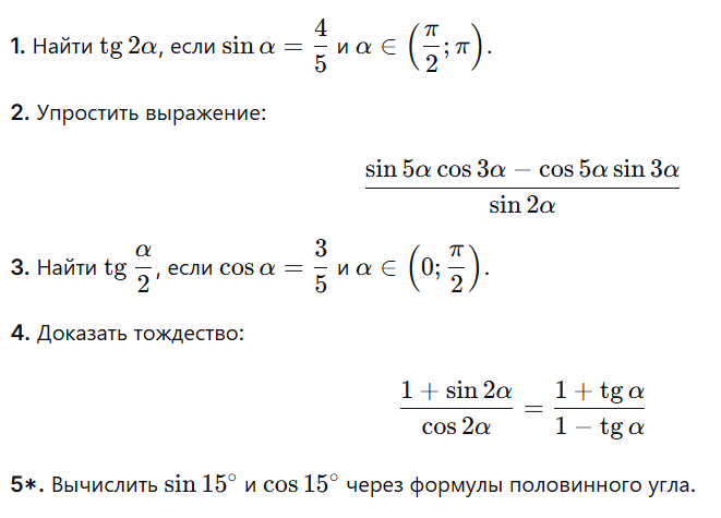 А10 ДЗ Формулы двойного и половинного угла