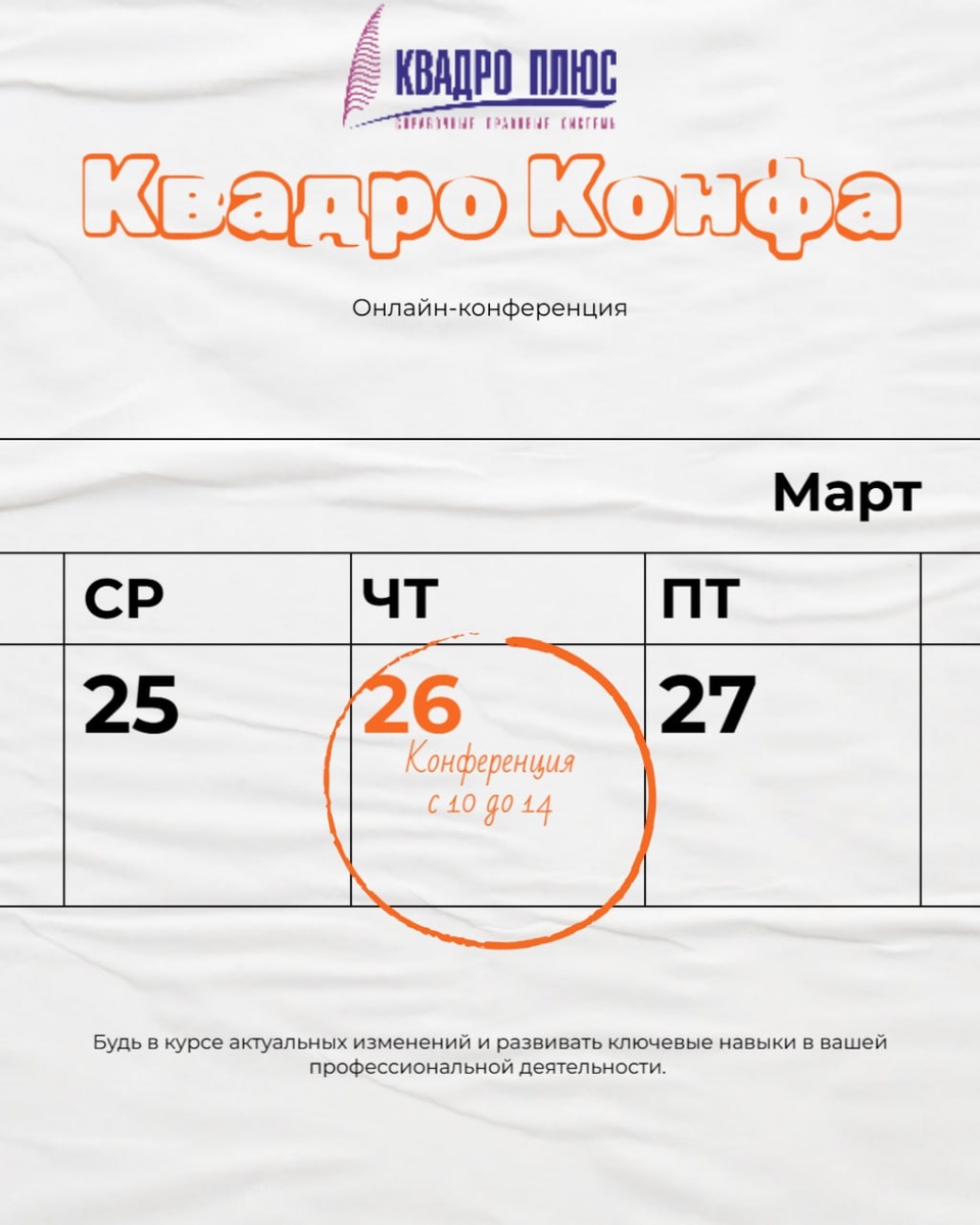 ! У нас для Вас потрясающая новость! 🚀 26 марта мы проводим уникальную онлайн-конференцию. 💡 🌐 На нашей виртуальной сцене выступят эксперты Сибирского федерального округа: • Гладкова С.Г. – эксперт по налоговому законодательству • Русецкая О.В. – юрист практик по трудовым спорам • Вырвич Е.В. – коуч и бизнес- тренер 🎤 Что предлагаем? 1.Кратко, информативно. Все,что нужно учесть в отчетности за 1 квартал. 2. Важные, но не очевидные нюансы в защите персональных данных. А также на Ваш выбор, по итогам голосования, одна из тем: ✔️ Грани лидерства. ✔️Ответственность в команде: иллюзия или реальность. ✔️Сила команды. ✔️Энергия лидера или как зарядить свою батарейку ? В комментарии пишите свои предложения по теме для следующих конференции Ваше мнение – это наш компас! 🧭 Давайте вместе создадим конференцию, которая вдохновит каждого! Ждем ответов с нетерпением! 💖 🎁 И у нас для Вас приятный сюрприз! Участники опроса получат промо-код на участие в онлайн конференции!