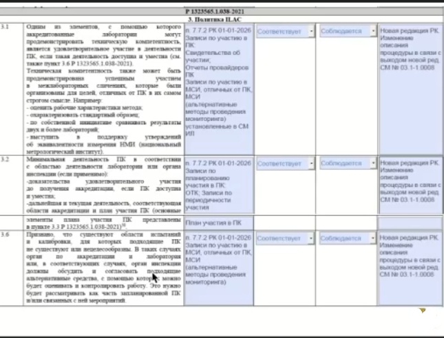 - п. 23.4 КА — ссылка на пункт СМК с реализацией Р1323565.1.038‑2021 («Оценка соответствия. Политика ILAC в отношении участия в деятельности по проверке квалификации»);