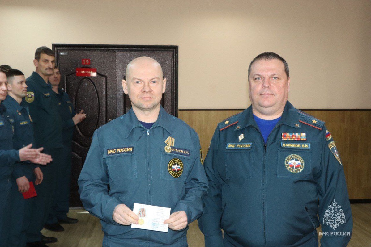 Начальник ГУ МЧС России по Магаданской области вручил медали "35 лет МЧС России" пожарным испасателям
