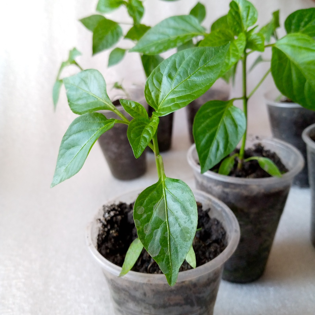Про перец: не досыпаю грунт в стаканы, оставляю 3-4 см - и стебли как карандаш толстые. И не вытягивается - и не переживаю, что перерастет