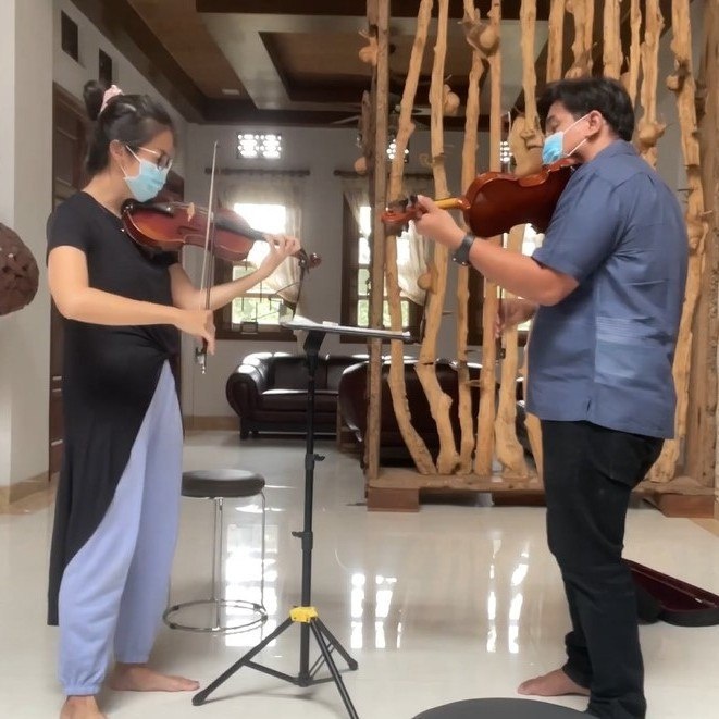 ? Среди приписываемых Моцарту произведений есть необычный дуэт для двух скрипок. Музыканты должны встать друг к другу лицом и положить страницу с нотами между собой. Каждая скрипка играет свою партию, но обе партии записаны на одной и той же странице. Скрипачи начинают читать ноты с разных концов листа, затем встречаются в середине и снова удаляются друг от друга, а в целом получается красивая мелодия. Miss Jacobson's Music / Mozart Mirror Duet https://missjacobsonsmusic.blogspot.ru/2011/09/mozart-mirror-duet.html