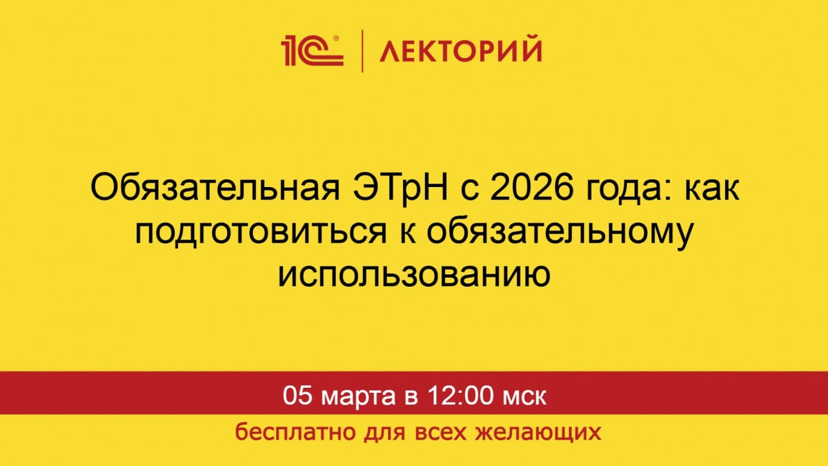 Электронная транспортная накладная (ЭТрН), цифровой аналог бумажной транспортной накладной, обеспечивающий порядок и прозрачность в сфере грузоперевозок станет обязательной к использованию с 1 сентября 2026 года. В ходе лекции Антон Птушкин, эксперт направления 1С-ЭПД ГК «Астрал», рассмотрит следующие вопросы: 🔸законодательная база ЭПД: требования, сроки и риски; 🔸как выглядит жизненный цикл ЭТрН: от создания до хранения; 🔸как переход на ЭТрН закрывает боли грузовладельцев и экспедиторов; 🔸как определить свою роль в ЭПД; 🔸как работать в сервисе 1С-ЭПД в зависимости от роли и сценария перевозки; 🔸как организовать работу бухгалтера в 1С с ЭПД; 🔸ЭТрН в роуминге; 🔸чек-лист по переходу на 1С-ЭПД; 🔸ответы на частые вопросы. Затем Роман Горелов, технический специалист направления 1С-ЭПД ГК «Астрал», продемонстрирует работу сервиса 1С-ЭПД на практическом примере. ☝️ Зарегистрироваться на лекцию и задать вопросы лектору 📲 1С:Лекторий в МАХ ❤ 1С:Лекторий в Телеграм 💙 1С:Лектори
