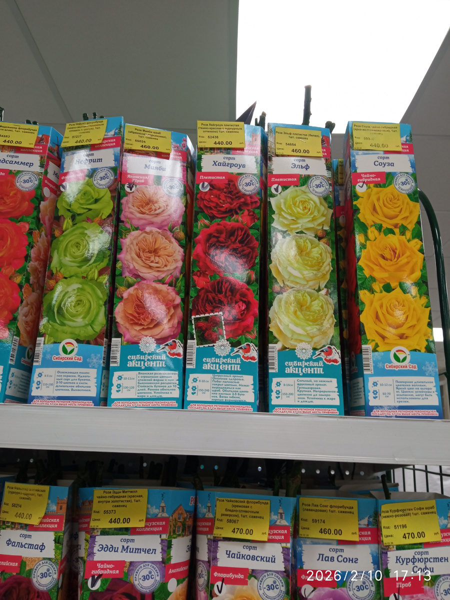 Помню как в прошлом году перед 8 марта пожилая семейная пара выбирала розы в коробках, муж всё говорил, что это подарок для жены. В нашем небольшом магазине садовых товаров опять появились розы — привезли их довольно много, выбор очень разнообразный. Поставщиком оказалась компания «Сибирский акцент». Я внимательно смотрела на названия сортов и удивлялась — многие из них были для меня незнакомыми. Хотя, по правде сказать, сортов роз насчитывается тысячами и все невозможно знать.