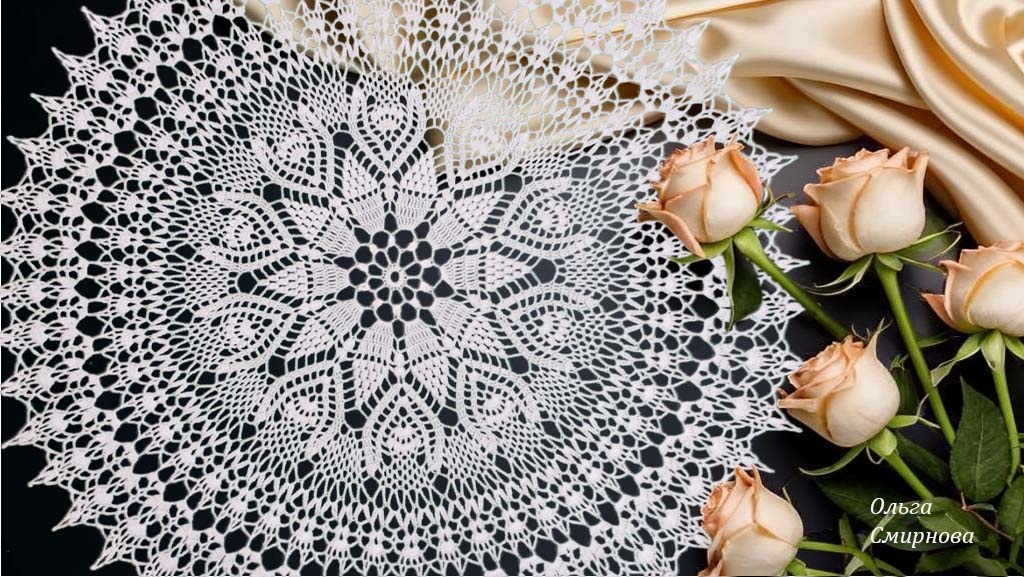 Я очень довольна, что ее связала - она солидная такая, с разнообразными простыми узорами (кукурузками, бутонами сказочных цветов, мелкой сеточкой, ажурной каймой). Диаметр 59 см, нитки "Анна 20" (50г/330м, 70 грамм), крючок 1 мм. Предупреждаю, что сильно фалдила в процессе работы, но блокирование подтянуло и выровняло узор. И этот процесс я тоже показала в видео. Мастер класс: https://rutube.ru/video/dbfcbeaa35ce2f184013f5e6176c3f41/