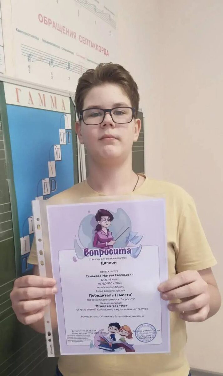 Матвей Самойлов— победитель Всероссийского конкурса по сольфеджио «Музыка всегда с тобой