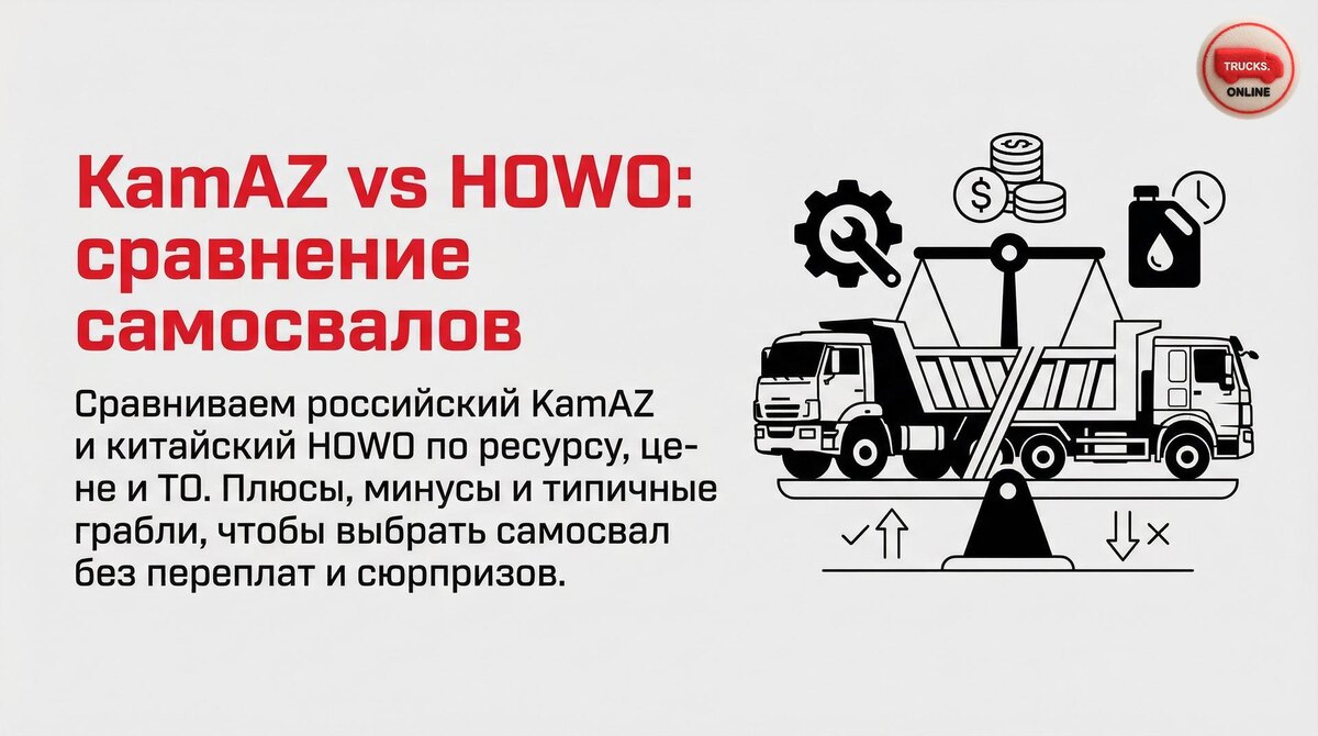 Выбирая самосвал для стройки или перевозок, часто стоишь перед выбором: надежный, но дорогой KamAZ или бюджетный HOWO? Мы из TRUCKS.ONLINE видим, как это решение влияет на весь бизнес — от затрат на запчасти до простоев. Давайте разберемся по делу: сравним по ресурсу, цене и обслуживанию, добавим исторический контекст и подскажем, что проверить у продавца. KamAZ — это наш, российский гигант из Набережных Челнов, родом из 1969 года. Завод создавался для тяжелых грузовиков, и с тех пор KamAZ стал символом耐ности: помните, как их машины выигрывали ралли Dakar? Сегодня это проверенная техника для суровых условий — от сибирских морозов до пыльных карьеров. HOWO — китайский бренд от Sinotruk, появился в 2007-м как обновка старой марки Steyr. Китайцы быстро захватили рынок бюджетными самосвалами: за 15 лет они научились копировать лучшее от MAN и Volvo, но по цене вполовину ниже. Мы часто видим HOWO на стройках Москвы и регионов — там, где нужен объем без лишних вложений. Мы проверили данные п