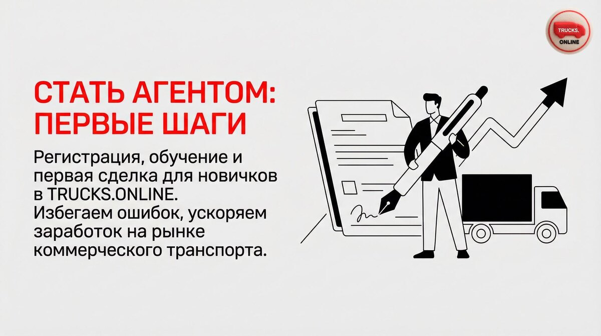 Новые агенты — это часто логисты, менеджеры по продажам или предприниматели, которые хотят зарабатывать на подборе грузовиков и спецтехники для клиентов. Вопрос ‘как стать агентом’ возникает, когда вы видите объявления о партнерстве или ищете дополнительный доход без больших вложений. Важно разобраться сразу: неправильный старт тянет время, а первые сделки задают темп заработка — мы видим, как новички теряют 1-2 месяца на рутину. Коротко: стать агентом в TRUCKS.ONLINE просто — зарегистрируйтесь на платформе, пройдите бесплатное обучение (1-2 часа), используйте умный поисковик для подбора техники и закройте первую сделку по нашей схеме. Комиссия начисляется автоматически, выплаты ежемесячно. 1. Регистрация: зайдите на trucks.online, кликните ‘Стать агентом’, заполните форму (ФИО, контакты, опыт — если есть). Мы проверяем за 1-2 дня и даем доступ к кабинету. Без вложений, только паспортные данные для договора. 2. Обучение: в кабинете — видео и чек-листы по работе с запросами клиентов. Уч