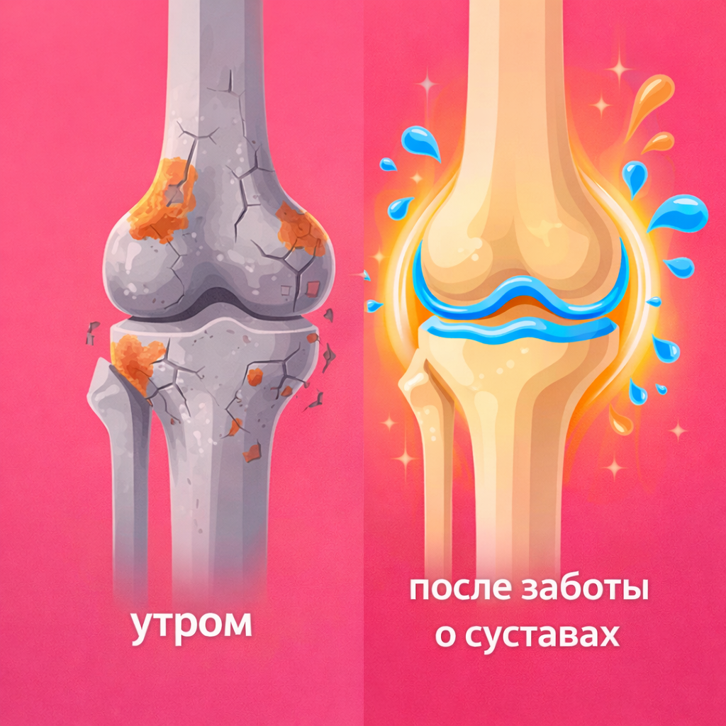 Суставной хрящ примерно на 80% состоит из воды. Если вы хронически пьёте мало — хрящ буквально становится тоньше и жёстче. К утру, после 7–8 часов без воды, этот эффект максимален.