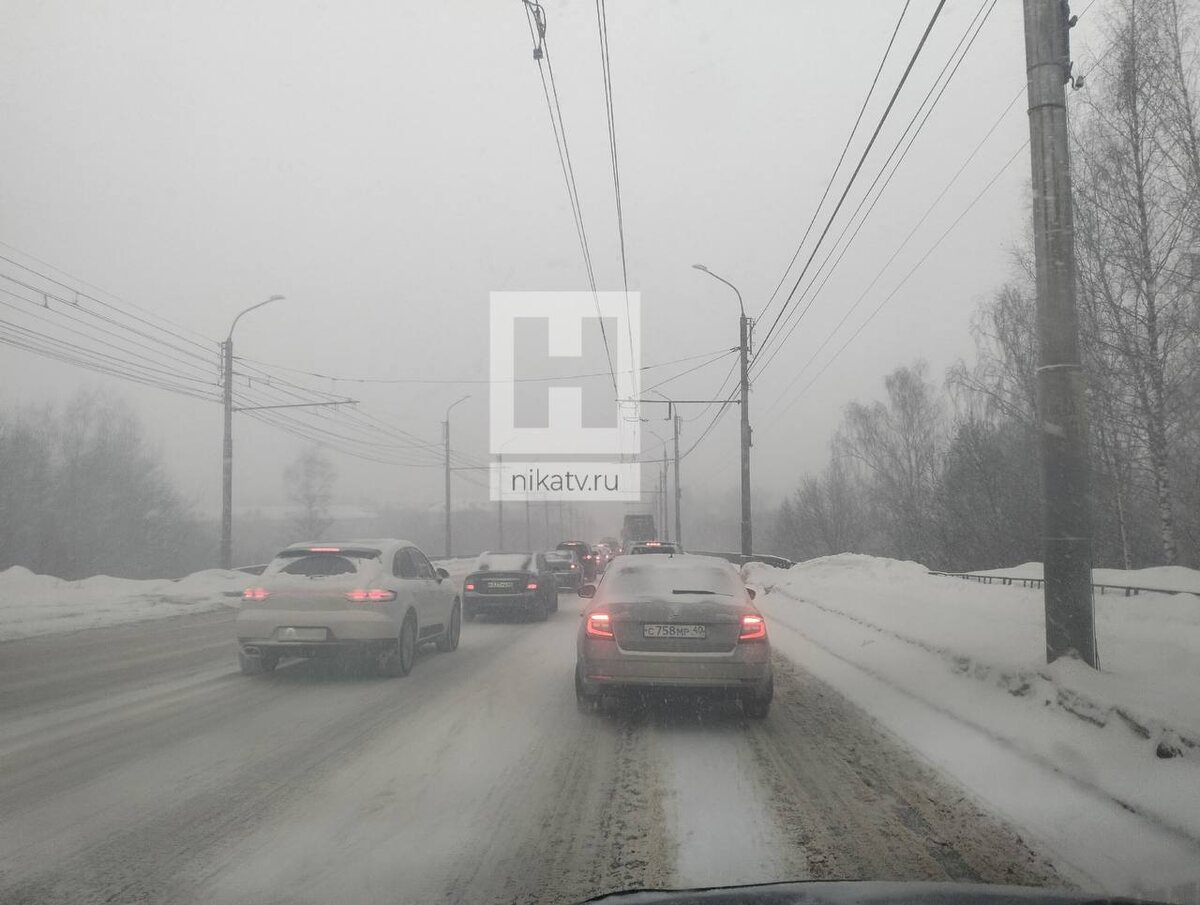 Не зря вчера предупреждали о метели — Калугу снова заметает. В городе образовались пробки, видимость плохая, сообщают водители.