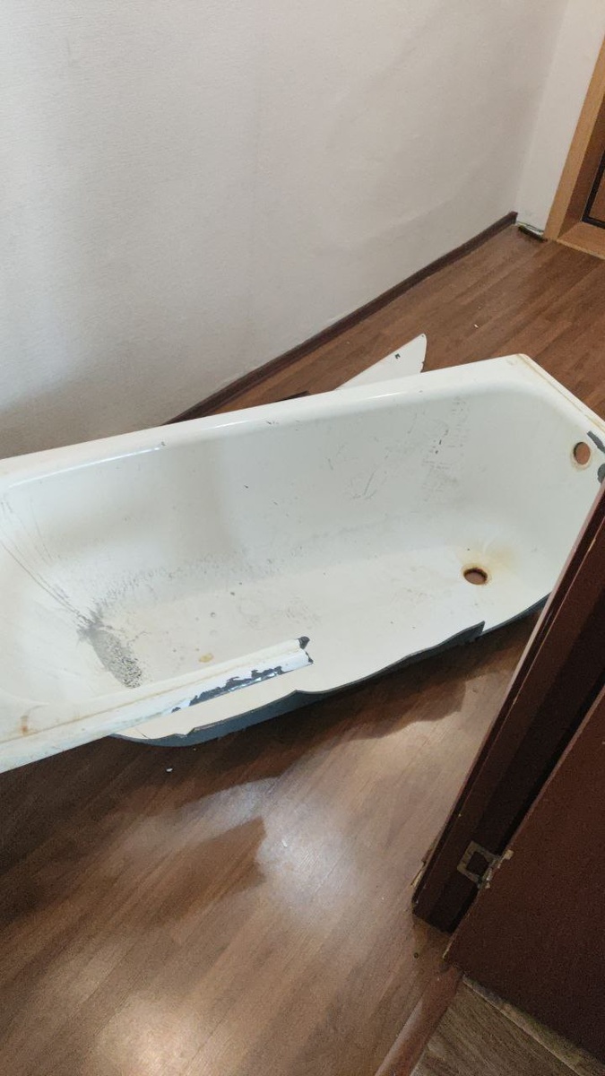 23 февраля начался вот с этого, пока вынесли только чугунную ванну, дальше больше сняли панели со стен....