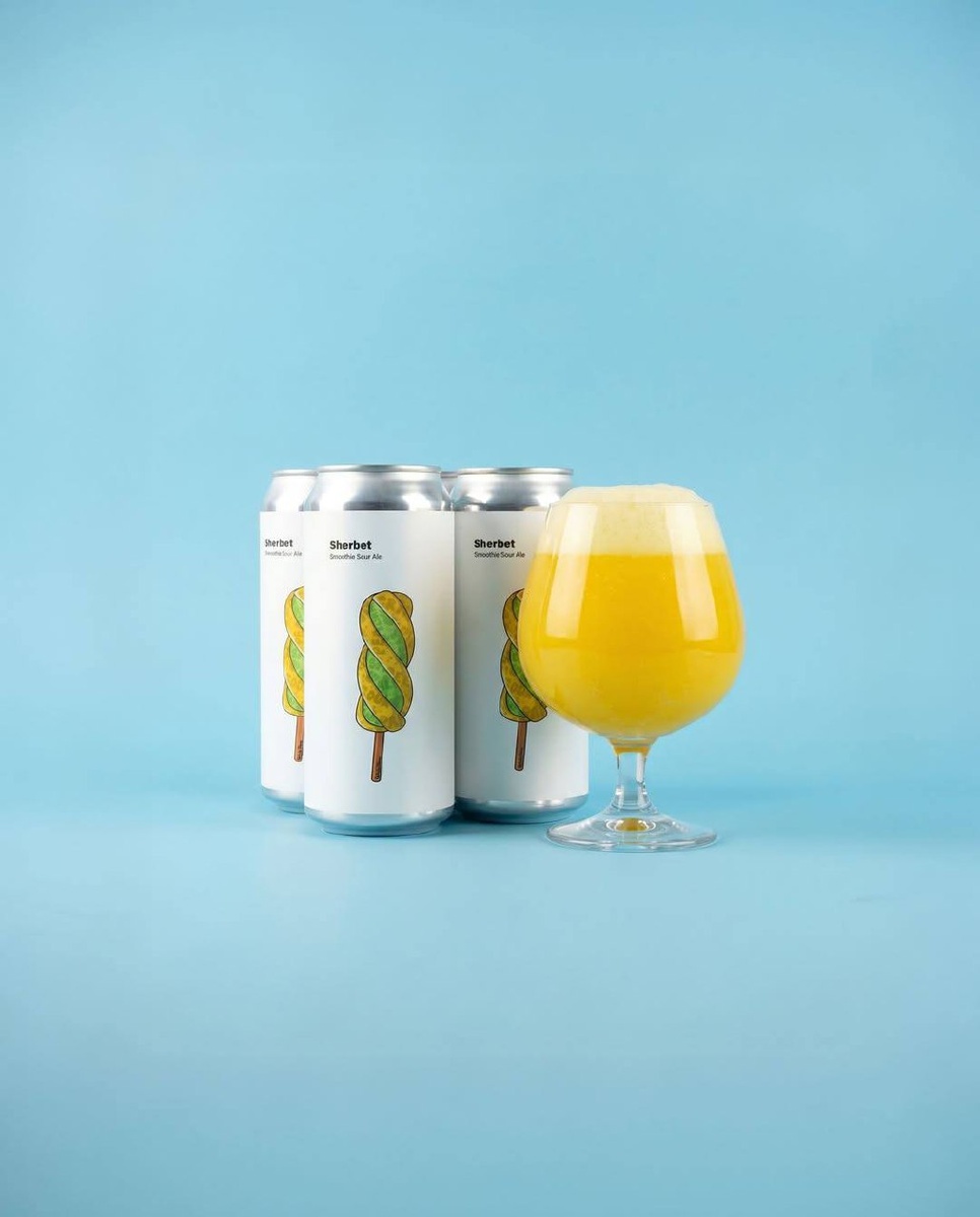 Это сауэр эль с замороженным фруктовым щербетом из ананаса, мандарина, банана и груши.