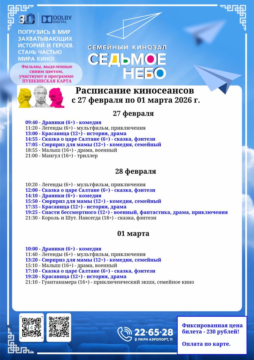 Расписание киносеансов с 27 февраля по 1 марта 2026 год