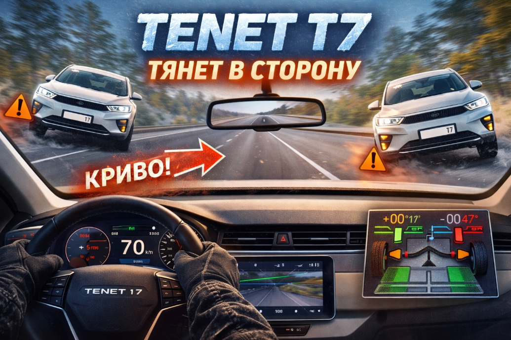 Одна из самых обсуждаемых тем в сообществе владельцев Tenet T7 — это ощущение, что автомобиль постоянно уводит в сторону, а руль приходится держать под неестественным углом, подруливать. 😬 Кто-то замечает это на первой неделе эксплуатации, кто-то — спустя несколько тысяч километров, а третьи вообще не понимают, о чём речь, считая, что машина едет идеально. Вообще подобная проблема может встретиться на любом автомобиле.