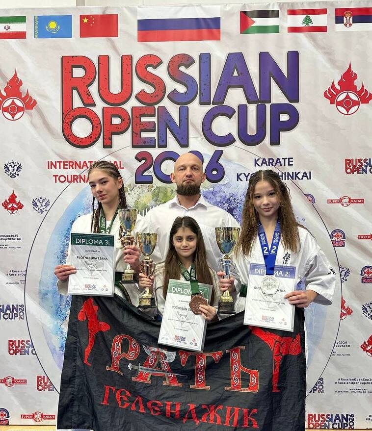 На татами Московского центра боевых искусств прошли традиционные международные соревнования «Russian Open Cup». Турнир собрал около 1800 атлетов из 17 стран мира и 35 регионов России, которые на протяжении четырех дней боролись за медали в весовых категориях, а также в зрелищных дисциплинах ката и ката-группа. Пять юных бойцов из геленджикского спортивного клуба «Рать», представлявших Краснодарский край, не только продемонстрировали отличную физическую и техническую подготовку, но и несгибаемую волю к победе. В результате напряженных схваток геленджичане привезли домой награды: Софья Погосян (возрастная группа 10-11 лет, до 30 кг) – завоевала бронзу. Вероника Гусева (12-13 лет, до 45 кг) – поднялась на вторую ступень пьедестала. Лиана Плотникова (12-13 лет, до 55 кг) – также стала бронзовым призером. За шаг до призовой тройки остановилась Амели Плотникова, войдя в восьмерку сильнейших спортсменов соревнований. Эти достижения стали результатом усердных тренировок под руководством опытно