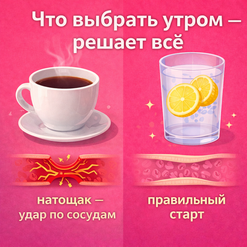 «Это самое важное, что вы можете сделать для сосудов утром», — говорит он. — «Восполнить то, что организм потерял за ночь. Разбавить кровь. Дать сосудам мягкий старт».