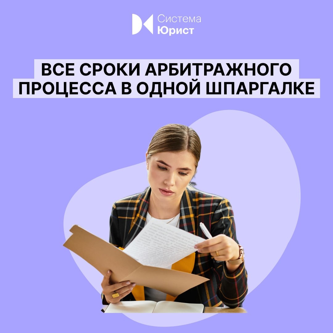 💡В одной удобной таблице собрали все возможные ситуации, с которыми можно столкнуться в ходе процесса. Для каждой указали срок, ссылку на АПК, учли все исключения из общих правил о сроках и дали короткий комментарий ✔️ Шпаргалка поможет быстро найти нужный срок для любого этапа арбитражного процесса, рассчитать срок действий и готовность документов. Оставьте заявку по ссылке, менеджер перезвонит в течение дня ➡️ 📄 Он откроет доступ для тест-драйва Системы Юрист, заберете шпаргалку. А еще расскажет, что входит в платную подписку и отправит коммерческое предложение с самой выгодной ценой.