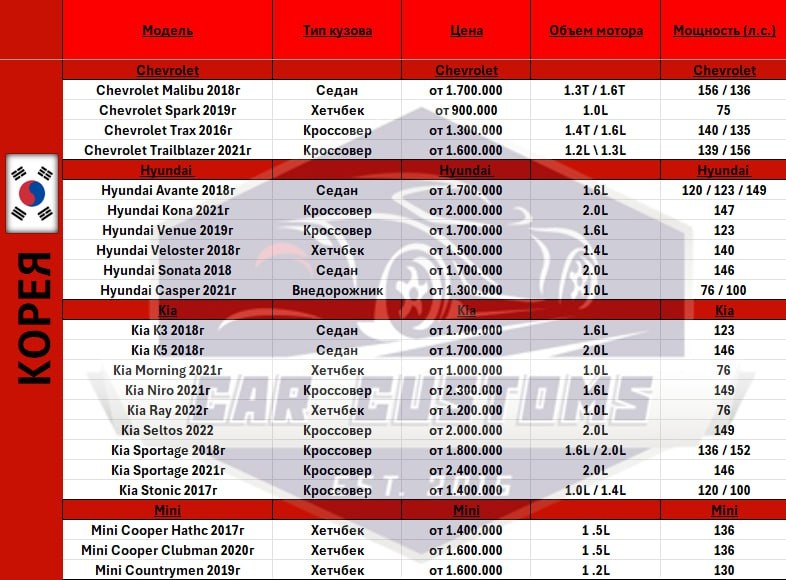 ❗️Мы составили для вас таблицы с автомобилями из Южной Кореи, которые не попадают под увеличение утильсбора